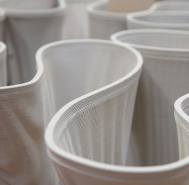 Fotografías de catálogo destinadas a mostrar a versatilidade de diferentes técnicas e acabados de impresión 3D.