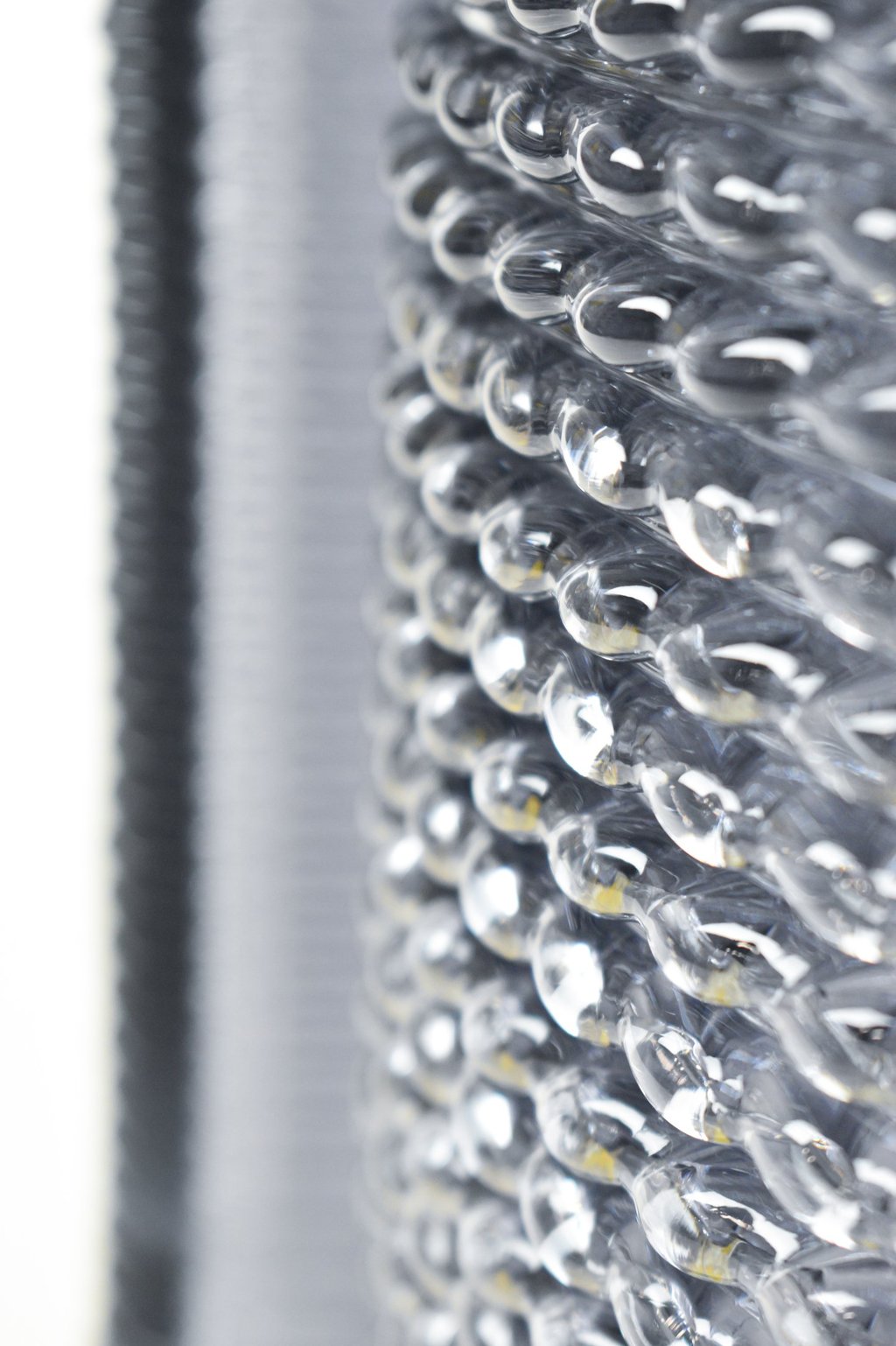 O acetato de celulosa é o material que outorga a esta peza unha aparencia transparente. Nalgúns destes proxectos, atoparás a importancia de resaltar detalles e primeros planos para estimular a imaxinación de novos clientes sen comprometer os acordos de confidencialidade. É por iso que non verás pezas completas nalgunhas coleccións. Este requisito en particular permitiume explorar novas formas de suxerir posibilidades de deseño sen revelar produtos específicos.
