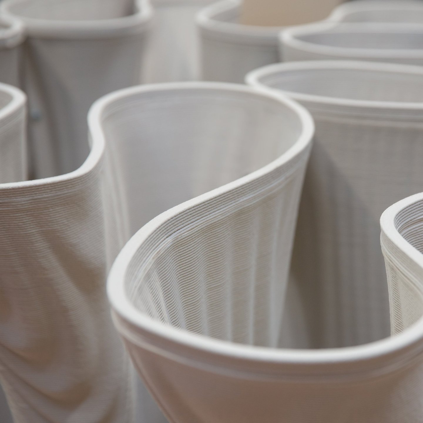 Fotografías promocionais dunha escultura impresa en 3D elaborada con barro branco. Busquei destacar as texturas e patróns mediante un coidadoso equilibrio de luz e sombra.