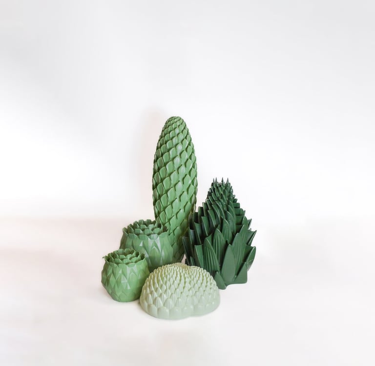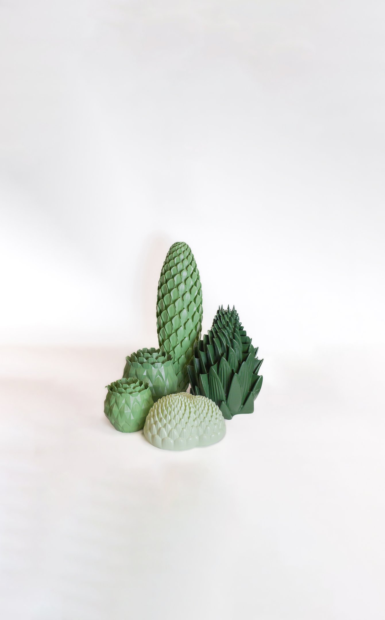A miña primeira sesión de fotos para esta empresa, unha colección de "plantas impresas en 3D" dispostas para imitar un ambiente de xardín.e.